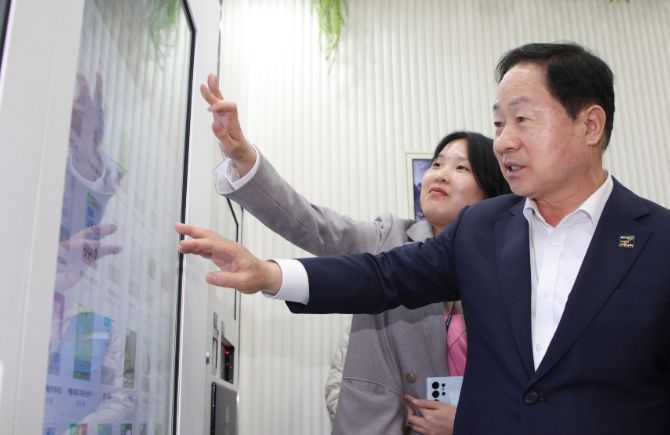 이날 주광덕 시장은 현장을 방문해 운영 상황을 점검하고, 직접 도서 대출 과정을 확인하며 이용 편의성과 시스템 안정성을 살폈다.