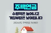 정부가 고령층의 안정적인 노후 소득 기반 강화를 위해 주택연금 제도 개선에 나선다. ‘100세 시대’를 대비한 국정과제의 일환으로, 보장 수준은 높이고 가입 문턱은 낮추겠다는 구상이다. 주택연금은 가입자가 보유 주택을 금융기관에 담보로 제공하고 사망 시까지 매월 일정 금액을 지급받는 제도다. 현재까지 누적 약 15만 가구가 가입했다. ■ 평균 수령액 인상…전 기간 849만 원 증가2026년 3월 1일 이후 신규 신청자부터 월 지급액이 인상된다. 평균 가입자(72세, 주택가격 4억 원) 기준 월 수령액은 기존 129만 7,000원에서 133만 8,000원으로 약 4만 1,000원 오른다. 전체 가입 기간을 기준으로 하면 총 수령액은 약 849만 원 증가하는 효과가 있다. 다만 실제 지급액은 담보 주택 가격과 가입자의 연령 등에 따라 달라진다. ■ 저가주택 보유 고령층 우대 확대취약 고령층에 대한 지원도 강화된다. 2026년 6월 1일 이후 신규 신청자 중 시가 1억 8,000만 원 미만 주택 보유자가 우대 대상에 해당할 경우, 월 우대지원금은 기존 9만 3,000원에서 12만 4,000원으로 확대된다. 저가주택 보유 고령층의 소득 보전 기능을 강화하겠다는 취지