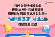 개인의 상황 변화에 따라 받을 수 있는 정부 혜택을 놓치지 않도록 알려주는 ‘혜택알리미’ 서비스가 국민 편의성을 높이며 주목받고 있다. 해당 서비스는 국민비서 등을 통해 제공되며, 국민이 일일이 정보를 찾지 않아도 맞춤형 공공서비스 정보를 자동으로 안내받을 수 있는 것이 특징이다. ■ 6천여 종 공공서비스, 맞춤형으로 안내‘혜택알리미’는 중앙행정기관과 공공기관이 제공하는 약 6,000여 종의 공공서비스를 대상으로 한다.출산, 취업, 이사, 소득 변화 등 개인 상황에 맞는 혜택을 선별해 알림 형태로 제공해 정부 지원제도 접근성을 크게 높였다. 이용 대상은 만 14세 이상 국민 누구나 가능하다. ■ 정부24에서 간편하게 이용혜택알리미 서비스는 정부24를 통해 이용할 수 있다.정부24 웹사이트 또는 모바일 앱에 접속해 간단한 동의 절차만 거치면 서비스 이용이 가능하다. 모바일 이용자는 정부24 앱 하단의 ‘혜택알림’ 메뉴를 통해 바로 접근할 수 있으며, 본인 인증 후 맞춤 혜택 알림을 설정하면 된다. ■ 회원가입 시 한 번에 동의도 가능정부24 회원가입 과정에서 **‘혜택알리미 서비스 이용 동의’**를 선택하면 별도 절차 없이 바로 서비스를 이용할 수 있다.이용약