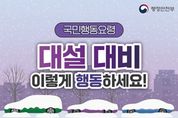 겨울철 대설은 짧은 시간에 많은 눈이 쌓여 차량·산간 고립, 교통사고, 시설물 붕괴 등 다양한 위험을 초래할 수 있다. 특히 습설은 일반 눈보다 무게가 3~10배 더 무거워 건물·비닐하우스 등 구조물 붕괴 위험이 크게 증가한다.이에 따라 가족과 이웃이 함께 대비할 수 있도록 대설 행동요령을 숙지하는 것이 중요하다. ■ 대설 행동요령 ①◇ 기상정보 수시 확인대설·습설 예보가 나오면 평소보다 더 자주 기상정보를 확인해 상황에 대비한다.※ 눈이 쌓이는 날은 외출 자제, 부득이한 경우 대중교통 이용 권장 ■ 대설 행동요령 ②◇ 눈은 스스로 치우고, 미끄럼 사고 예방내 집·점포 앞 눈을 신속히 치워 낙상사고를 예방한다.※ 눈길에서는 자전거, 전동킥보드 등 이동수단 사용 금지 ■ 대설 행동요령 ③◇ 제설작업은 낮 시간·2인 1조로제설은 반드시 주간에 2인 1조 이상 안전 확보 후 진행한다.※ 심야 제설, 지붕에 올라가 눈 치우는 행위 등 위험한 작업은 절대 금지※ 눈이 많이 쌓였다면 즉시 안전한 곳으로 대피 ■ 대설 행동요령 ④◇ 위험 구조물 접근 금지가로수·노후 시설물은 눈의 무게로 쉽게 붕괴될 수 있다.조금이라도 위험 신호가 보이면 즉시 대피 후 신고한다.※ 노후
